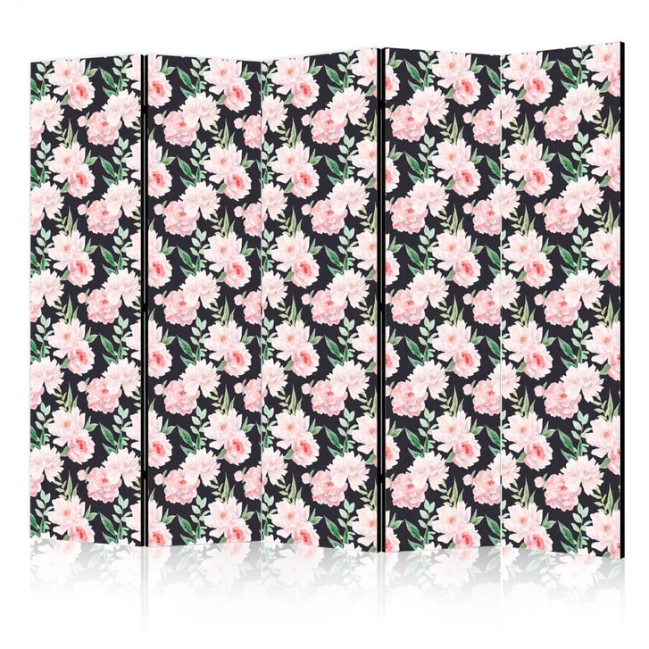Paravent, Raumteiler freistehend, Trennwand - Peonies - Pink Floral Graphite