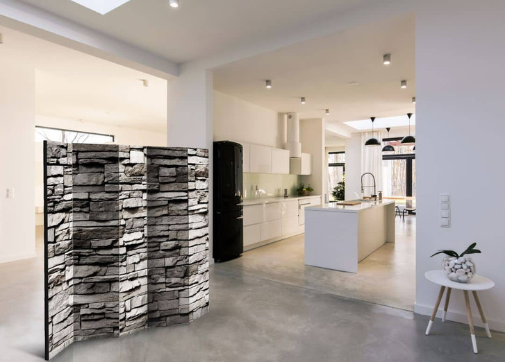 Paravent, Raumteiler freistehend, Trennwand - steinerne Fassade , 5-teilig - 225 x 172 cm