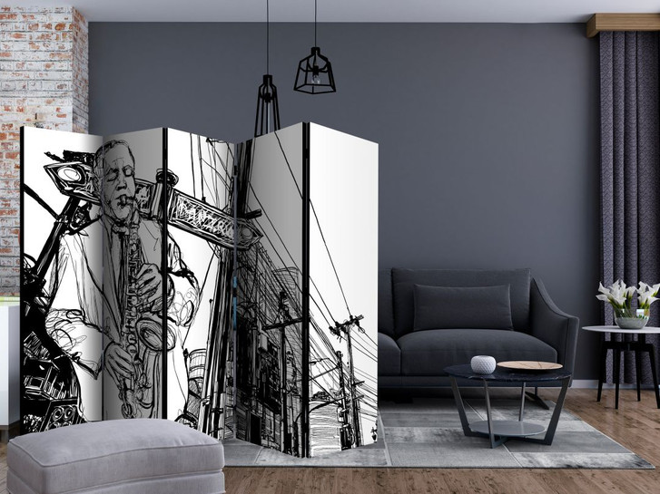 Paravent, Raumteiler freistehend, Trennwand - swingender Broadway , 5-teilig - 225 x 172 cm