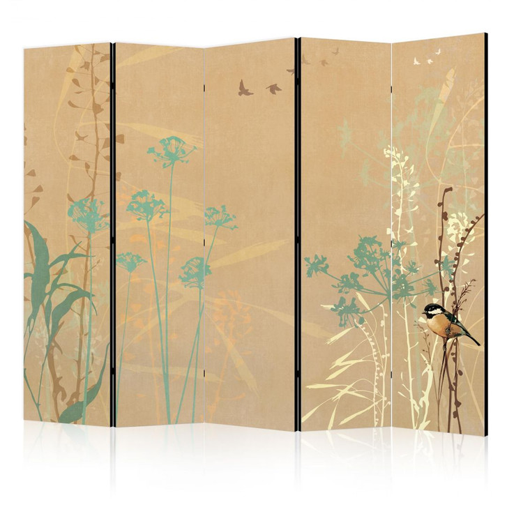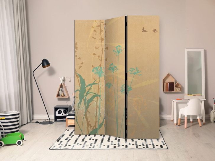 Paravent, Raumteiler freistehend, Trennwand - Tiny Bird - Colorful Grasses in Golden Shades of Sunset