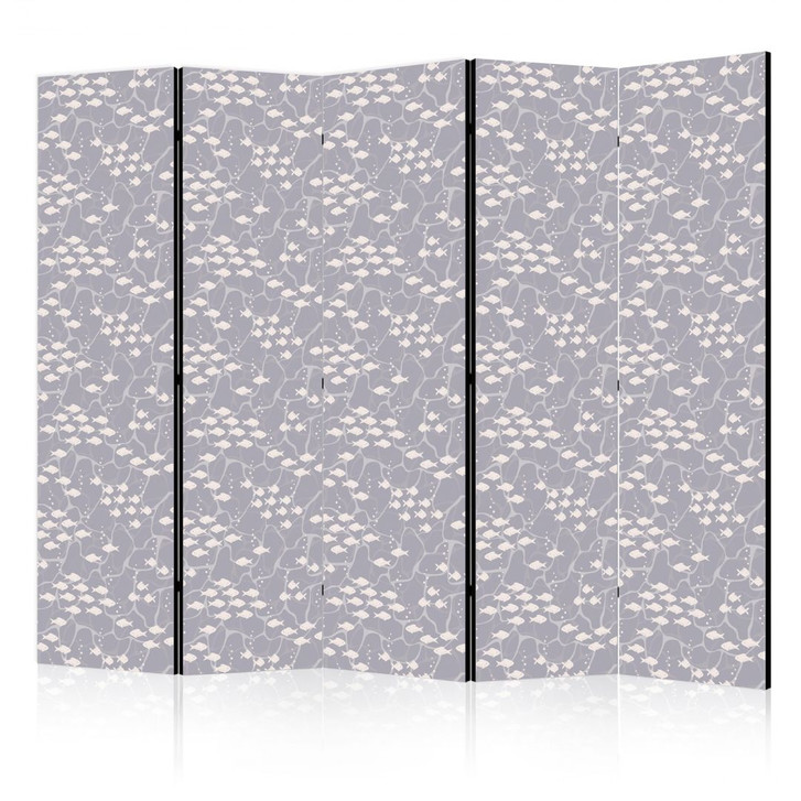 Paravent, Raumteiler freistehend, Trennwand - Tiny Light-Beige Fishes Against Marine Depths