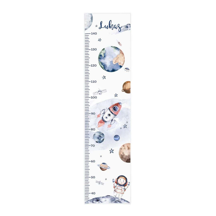 Die Erinnerung an das rasante Wachstum deiner Kinder für immer festhalten: Mit diesem liebevoll gestalteten Messstab kannst du jeden einzelnen Zentimeter messen und nachverfolgen. Das Motiv von Kristina Kvilis eignet sich besonders für kleine Weltraumfans.
