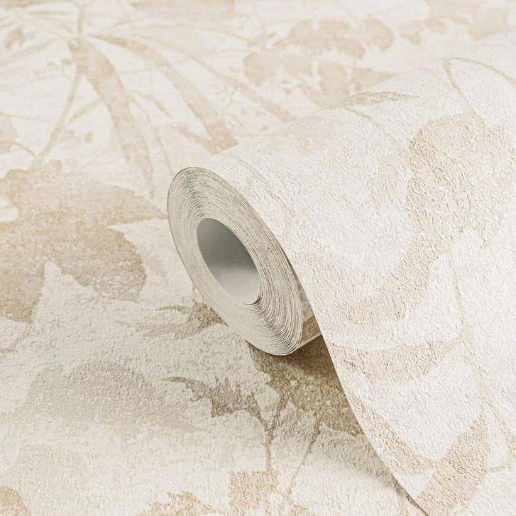 Pflanzen-Tapete Beige Weiss – Blättermotiv Naturstil – Vliestapete mit Struktur