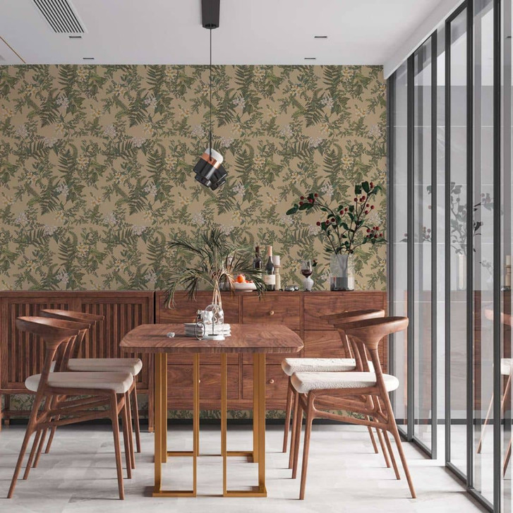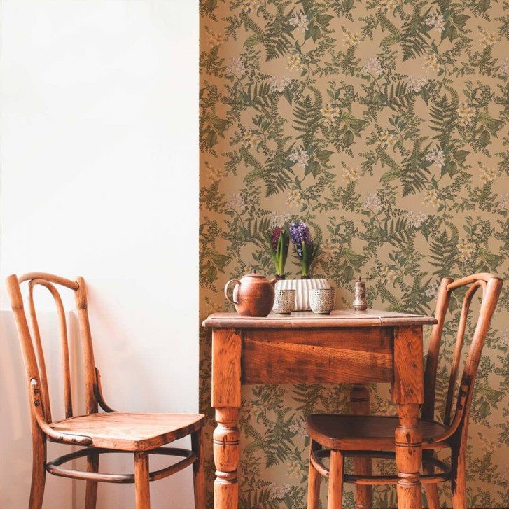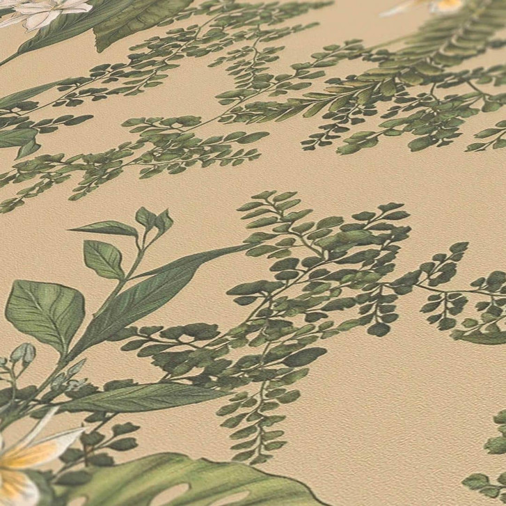 Pflanzen-Tapete mit Blüten Grün Beige - Vliestapete mit Blumen floral