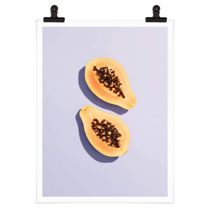 Was für eine Freude für Augen und Gaumen! Die tropische Frucht Papaya kommt als hochwertiger Kunstdruck in dein Zuhause. Ob in der Küche oder im Wohnzimmer: Die aufgeschnittene Frucht regt den Appetit an und ist auch optisch ein echter Hingucker.