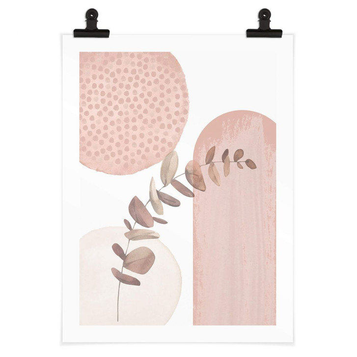 Ankommen und einfach nur entspannen – das geht am besten in den eigenen vier Wänden. Hol dir dieses Wandbild nach Hause und schaffe dir eine romantische Umgebung. Lass dich von der schlichten Eleganz des Boho-Prints inspirieren! Das Motiv im Boho-Stil ist schlicht gehalten, aber das Zusammenspiel von abstrakten Formen, dem Eukalyptuszweig und den zarten Rosé-Farben lässt das Bild lässig, bodenständig und ästhetisch wirken. In Kombination mit Pflanzen, geradlinigen Möbeln und gemütlichen Decken schaffst du dir ein besonders stilvolles und angenehmes Interieur. Das hochformatige Poster ist auf speziellem Posterpapier gedruckt, das sich leicht an deiner Lieblingswand anbringen lässt. So setzt du im Handumdrehen schöne Akzente, die begeistern. Du kannst das Poster auch mit einem Bilderrahmen, Washi Tape oder einer Bilderleiste aufwerten.