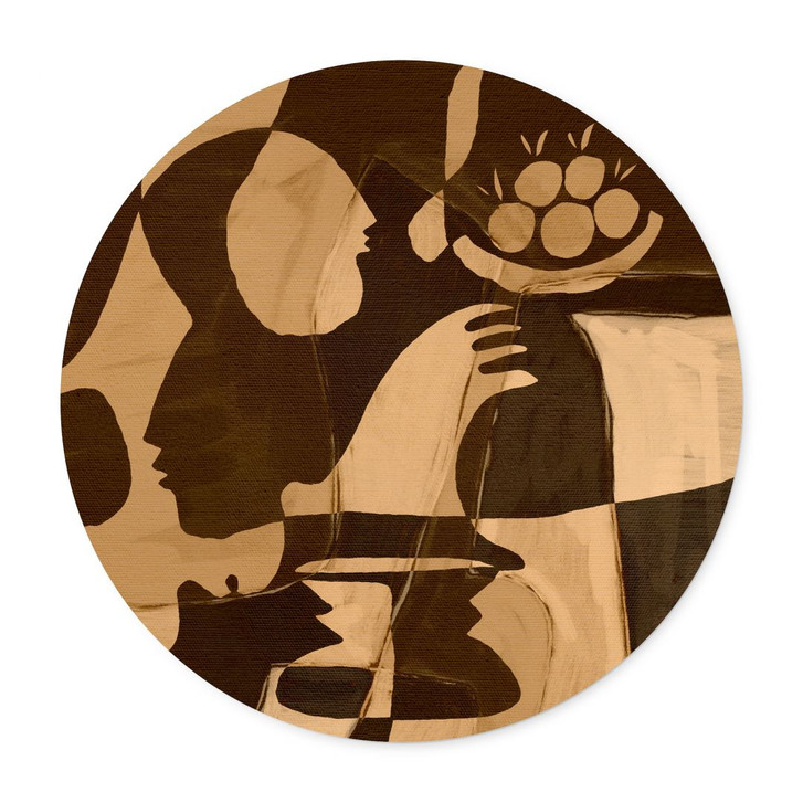 Rundes Poster mit abstrakter Komposition in warmen Erdtönen