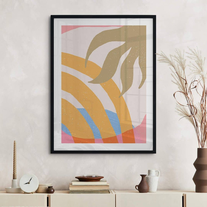 Lass dich von modernen Motiven inspirieren und schaffe dir deine eigene Wohlfühlzone zum Entspannen. Das Poster Botanik vermittelt ein Gefühl von Leichtigkeit und Gelassenheit. Das grafische Motiv im Boho-Stil ist geprägt von abstrakten Formen und erdigen Farben. Es ist schlicht gehalten, wirkt aber durch die verschiedenen Farben lebendig und warm. Dieses Bild lässt sich besonders gut mit Dekoelementen aus Naturmaterialien in warmen Farben kombinieren.