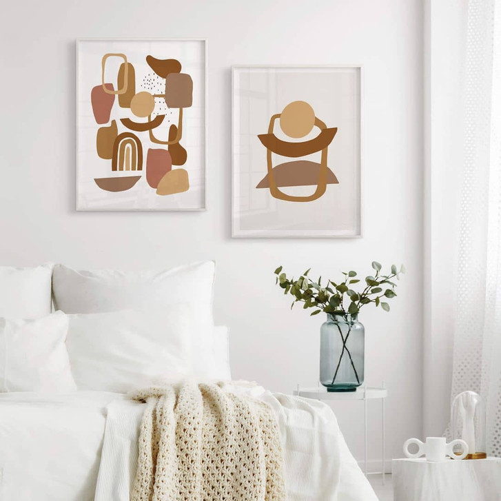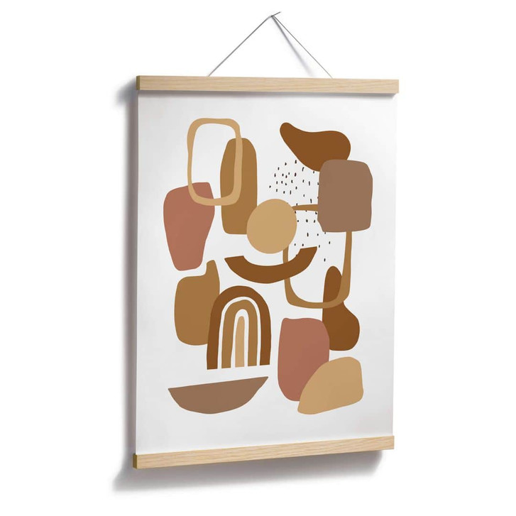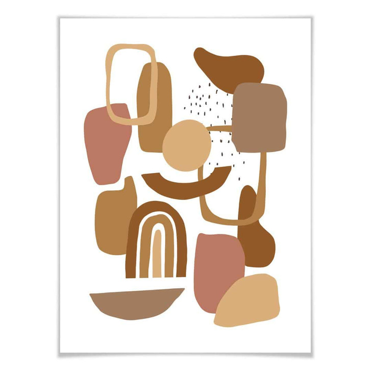 Brauchst du manchmal einfach eine kleine Auszeit und musst dem Alltag entfliehen? Nirgendwo geht das besser als in den eigenen vier Wänden. Die Illustration mit den verschiedenen Formen in Braun- und Beigetönen hebt die Stimmung und sorgt für einen Blickfang im Raum.