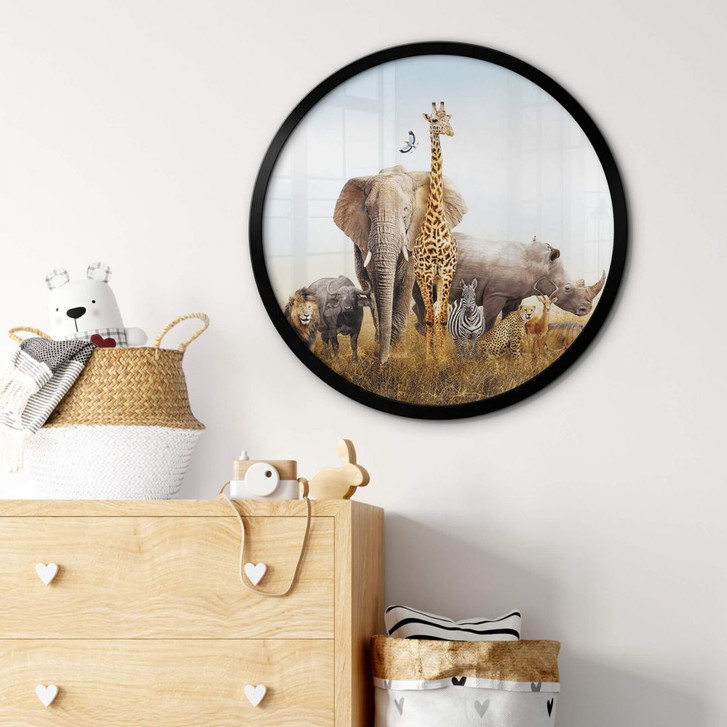 Möchtest du das Zimmer deines Kindes optisch aufwerten? Mit diesem Wandbild setzt du sofort neue Highlights im Raum. Es wird wild! Die beliebtesten Tiere aus der afrikanischen Savanne verbreiten als rundes Poster gute Laune im Kinderzimmer. Hier im Tierparadies findest du alles von winzigen Insekten bis hin zu grossen Schwergewichten wie Elefanten und Nashörnern. Mit diesem Wildlife-Motiv setzt du exotisch-afrikanische Akzente, die begeistern.