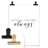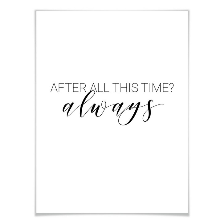 Habt ihr viel zusammen durchgemacht und seid immer noch ein tolles Team? Feiert eine unzertrennliche Freundschaft, Partnerschaft oder Ehe mit diesem passenden Spruch „Nach all dieser Zeit? Alwalys“! Denn diese Typografie spricht direkt aus dem Herzen. Lasst euch von beliebten Sprichwörtern inspirieren und schafft eine Atmosphäre, in der ihr euch entspannen könnt. Das weisse Poster besticht durch seinen erstklassigen Druck und schafft mit wenigen Handgriffen ein zeitgemässes Ambiente zum Entspannen. Um das Motiv elegant zu unterstreichen, bieten wir zusätzlich Bilderrahmen in verschiedenen Farben an. So kannst du dein ausgewähltes Bild ganz nach deinem Geschmack optimal an der Wand präsentieren. Viel Spass beim Ausprobieren!