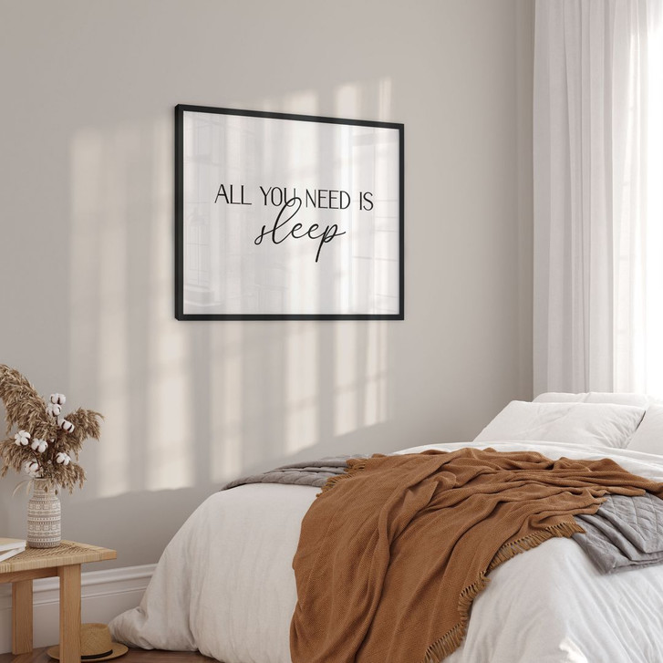 Hast du deinen eigenen Stil? Mit unseren Wandaccessoires kannst du ihn harmonisch zur Geltung bringen. Verleihe deinem Wohnbereich eine unverwechselbare Atmosphäre. „Alles, was du brauchst, ist Schlaf“ – ein passender Spruch für das Schlafzimmer. Schlaf ist sehr wichtig für unser Leben. Im Schlaf laufen in unserem Körper eine ganze Reihe komplexer Prozesse ab. Mach es dir im Bett mit einer passenden Matratze und gemütlicher Bettwäsche bequem. Lass dich vom Poster dazu inspirieren, früher ins Bett zu gehen oder mit kleinen Kindern einfach ein erfrischendes Nickerchen zu machen.