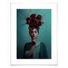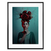 Kopfschmuck einmal anders: Die Frau mit dem knallroten Lippenstift trägt ein grosses Blumenarrangement im Haar. Das Arrangement besteht aus Rosen in einem kräftigen Rotton. Die dünnen, feinen Zweige verleihen dem Motiv mehr Volumen und Ausdruck. Das Fotomotiv ist in einem grünlichen Ton gestaltet und bildet einen passenden Farbkontrast zu den roten Blumen. Verschönere deine Wand mit modernen und stilvollen Fotografien von trenddeko.ch!