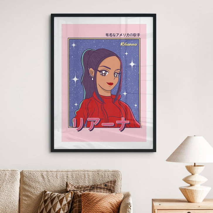 Es ist Zeit für einen neuen, trendigen Look. Dieses Poster ist eine besonders farbenfrohe Möglichkeit, deine Wand zu verschönern. Diese Porträtillustration ist eine Hommage an die R'n'B- und Popsängerin Rihanna. Es ist im typischen Manga-Stil gezeichnet, mit grossen Augen und einem kindlichen Aussehen. Der Einfluss des japanischen Comic-Stils verleiht dem Motiv eine besondere Note. Diese originelle Fan-Art ist perfekt für das Wohnzimmer und das Schlafzimmer von Teenagern. Mit dem Poster im Anime-Stil kann jede Wand sofort aufgepeppt werden – das Motiv mit dem japanischen Schriftzug eignet sich besonders für Kinder- und Jugendzimmer. Das Poster kommt mit einem hochwertigen Druck und modernem Design zu dir nach Hause. Hol dir passende Accessoires wie Bilderrahmen und Holzleisten, um dem Poster deine ganz persönliche Note zu verleihen!