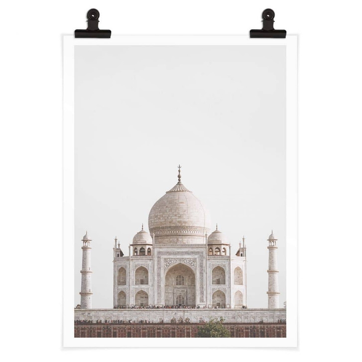 Das einzigartige Monument kommt als hochwertiges Wandbild in dein Zuhause – verleihe dem Wohnzimmer mit dem imposanten Taj Mahal orientalisches Flair!