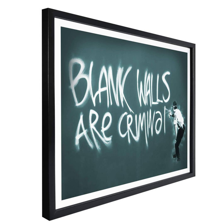 Banksy – der berühmteste Street-Art-Künstler machte sich mit seinen provokanten Graffiti-Motiven einen Namen, doch über ihn ist wenig bekannt. Bis heute hält er seine Identität geheim. Sein Markenzeichen: Stencil-Graffiti mit politischen und sozialen Themen. Der Ruf der Street Art ist zwiegespalten, doch Banksy ist in der Graffiti-Szene bereits eine lebende Legende und sorgt mit seinen Bildern immer wieder für Aufsehen. Mit dem Slogan „Blank walls are criminal“ macht Banksy einmal mehr seine Leidenschaft für die Wandmalerei im öffentlichen Raum deutlich. Das legendäre Statement ist auch bei trenddeko.ch als Glas- und Leinwandbild sowie als Acrylglasbild erhältlich.