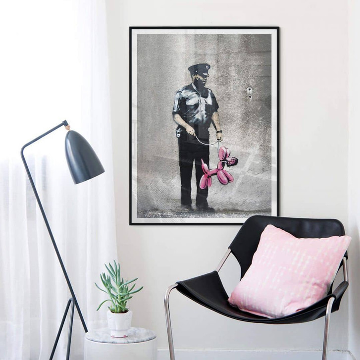 Verschönere dein eigenes Zuhause mit originellen Bildern und schaffe einen gemütlichen Ort, an dem du über die Welt nachdenken kannst. Dekoriere deine leeren Wände mit den gesellschaftskritischen Graffitis des berühmten Strassenkünstlers Banksy. Das Poster zeigt ein Kunstwerk, das der Künstler an die Aussenwand des Polizeipräsidiums in Toronto gemalt hat. Leider wurde es nur wenige Tage später zerstört.