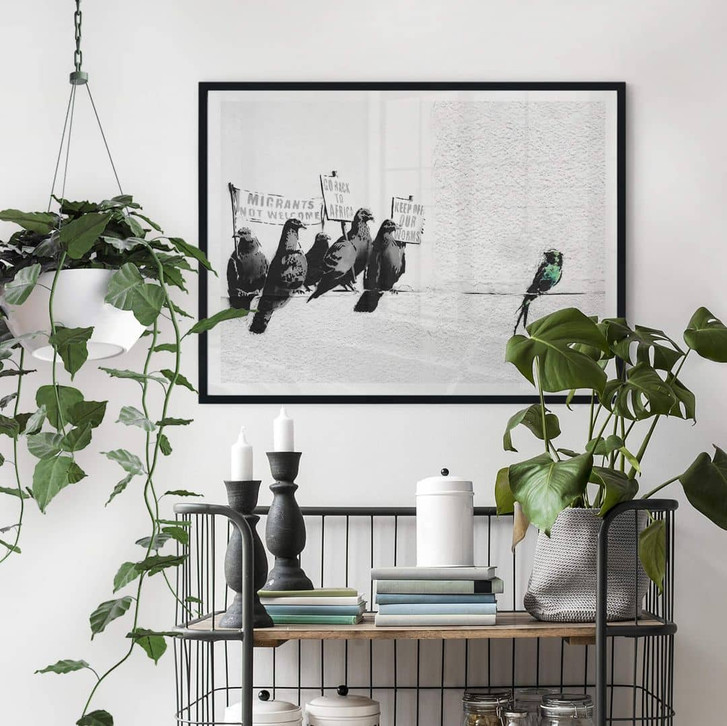 Banksy-Kunstdruck: Graue Tauben gegen exotische Vögel