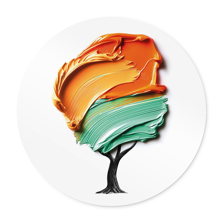 Poster Baum mit oranger und grüner 3D-Krone - Mielu - Rund
