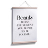 Schmücke deine Lieblingswand mit dem trendigen Spruchposter! „Schönheit beginnt in dem Moment, in dem du dich entscheidest, du selbst zu sein“ – das schwarz-weisse Poster ist in verschiedenen Grössen erhältlich. Die kreative Wandhalterung kannst du gleich mitbestellen.