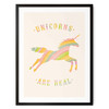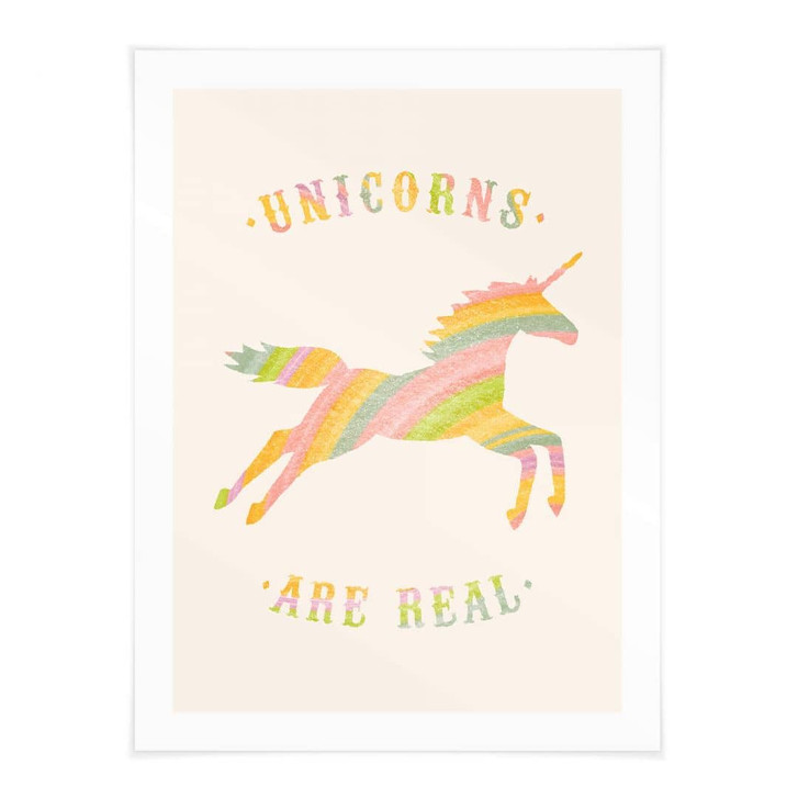 Buntes Einhorn mit der Aufschrift „Unicorns are real“