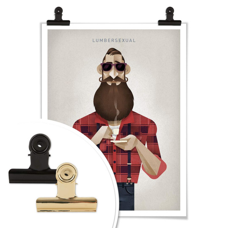 Verleihe deinem Wohnzimmer mit diesem Wandbild einen modernen Flair! Denn die Wohnungseinrichtung spiegelt deine Persönlichkeit wider und schafft eine einzigartige Wohlfühloase. Diese Illustration eignet sich aufgrund ihrer besonderen Details ideal dafür. Mode ist nicht nur für Frauen interessant. Auch für Männer gibt es immer wieder neue Trends und Highlights zum Ausprobieren. Vollbart, kariertes Hemd und rustikales Schuhwerk – der Lumbersexy-Look lässt den modernen Mann noch männlicher und kerniger wirken. Das trendige Holzfäller-Outfit wirkt bodenständig und sympathisch. Das Poster verleiht dem Kunstdruck eine moderne und stylische Note und steigert den Wohlfühlfaktor zu Hause. Das Poster besticht durch seinen hochwertigen Druck, der das grau-bunte Design wunderschön zur Geltung bringt. Es kann ganz einfach an die Wand gepinnt, geklebt oder gerahmt werden. So schaffst du mit wenig Aufwand ein neues, ansprechendes Raumgefühl.