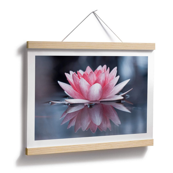 Lass dich von fantasievollen Motiven inspirieren und gestalte deine individuelle Wohlfühlzone zum Entspannen und Geniessen. Fotograf Fabien Bravin entführt den Betrachter direkt in die Natur. Die pinkfarbene Lotusblüte spiegelt sich im ruhigen Wasser. Das Poster bringt Ruhe und Harmonie in dein Zuhause.