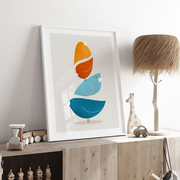 Hast du deinen eigenen Stil? Unser Wandaccessoire ist die perfekte Möglichkeit, ihn zu präsentieren. Die Illustration des Künstlers Gallagher zeigt vier kleine bunte Vögel, die übereinander stehen. Das fröhliche Wandbild eignet sich sowohl für das Wohnzimmer als auch für das Kinderzimmer.