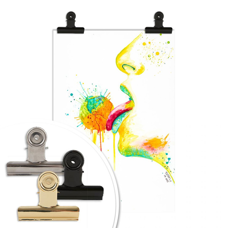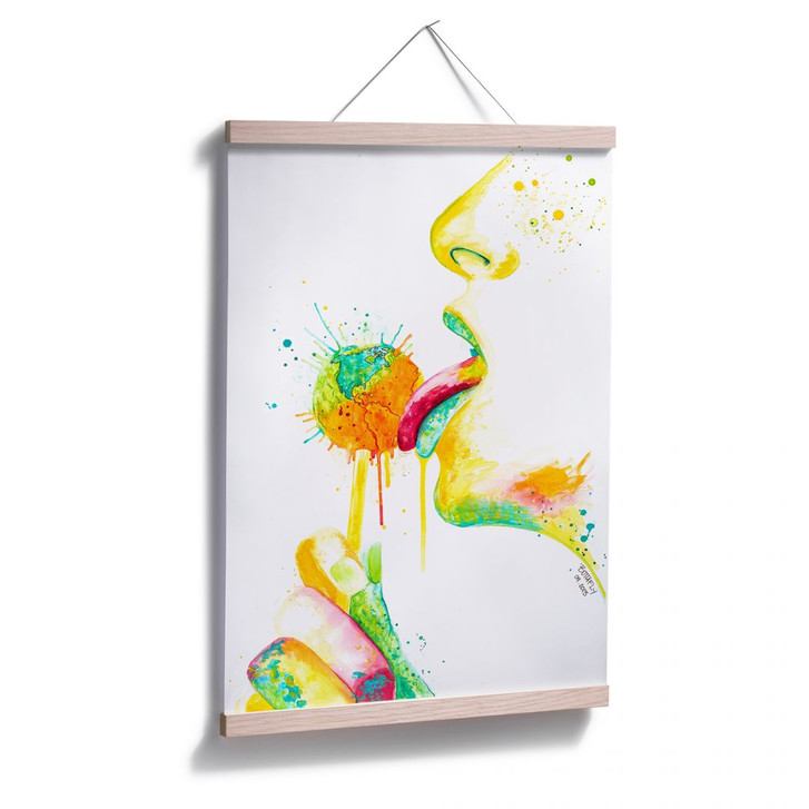 Vanessa Brünsing hat viele Länder der Welt bereist und ihr Grafikdesign-Studium in Deutschland absolviert. Mit gekonnten Pinselstrichen und bewegenden Farbkompositionen zaubert sie farbenfrohe Wandkunst mit Tiefgang. Das verführerische Poster mit dem Lolli ist in verschiedenen Grössen erhältlich.