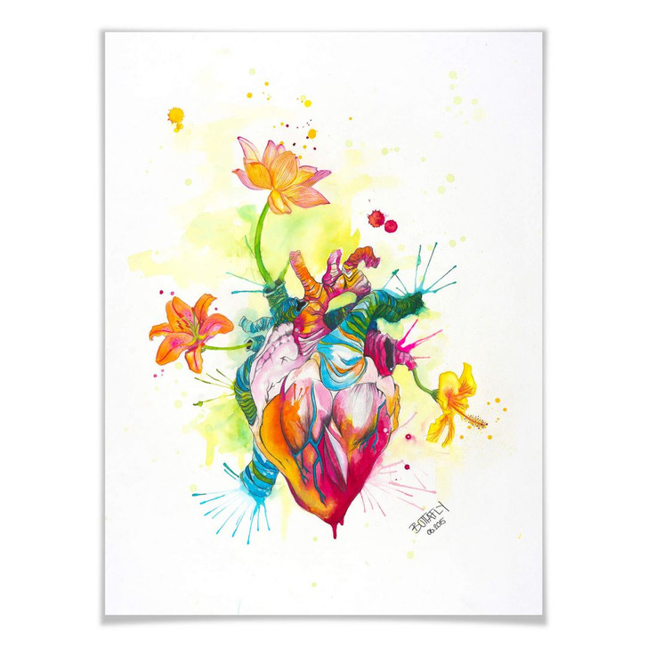 Der farbenfrohe Kunstdruck Nature Beating Heart des Künstlers Buttafly ist ein wunderschöner Blickfang an der Wand. Der Kunstdruck ist als Poster in verschiedenen Grössen erhältlich.