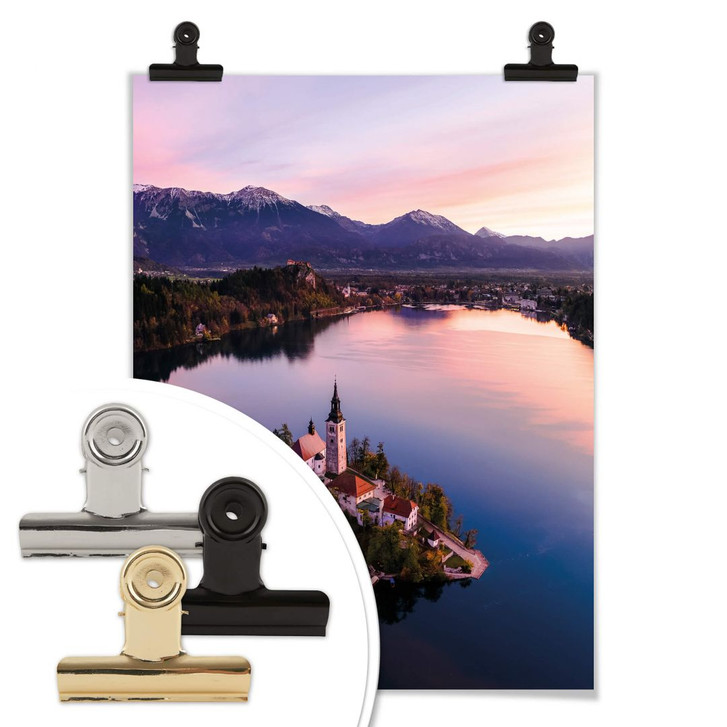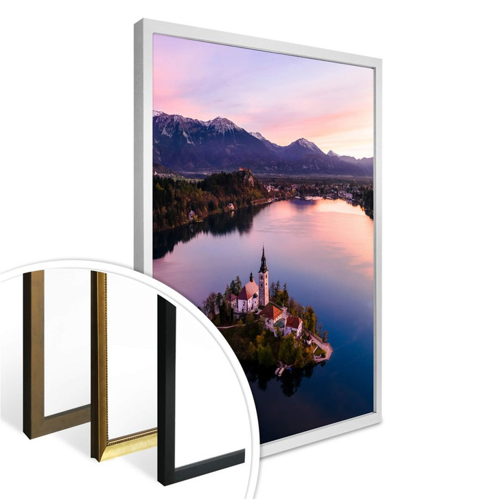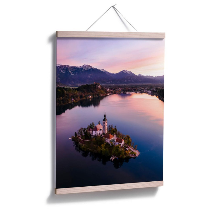 Umgeben von einer wunderschönen Berglandschaft liegt der Bleder See in der Region Oberkrain in Slowenien. Mitten im See liegt die Insel namens Blejski Otok, auf der eine Marienkirche zu finden ist. Der See kann mit einem Holzboot überquert werden, um die romantische Insel zu besichtigen. Diese Fotografie von Matteo Colombo bietet Ihnen eine traumhafte Aussicht auf den Bleder See und Umgebung, die Sie ganz bequem von Ihrem Schlafzimmer aus betrachten können!