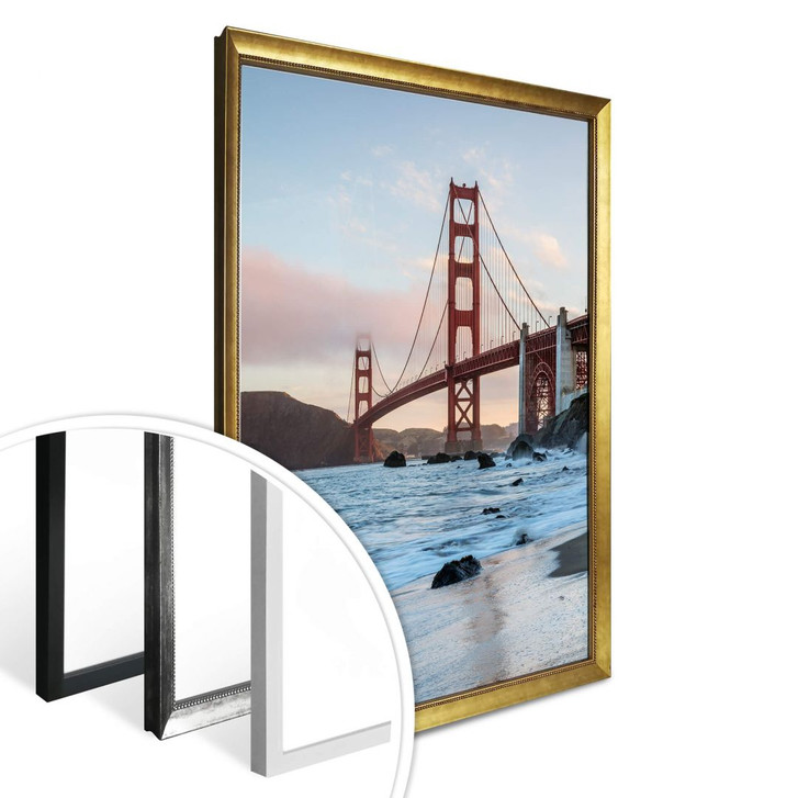 Die Golden Gate Bridge ist ein sehr beliebtes Motiv und zeigt sich auch in diesem Bild in ihrer ganzen Pracht. Sie ist die berühmteste Hängebrücke der Welt und mit einer Gesamtlänge von 2737 Metern ein beeindruckendes Bauwerk. Sie ist immer noch eine der längsten Hängebrücken und wurde 1937 gebaut. San Francisco und Marin County sind durch diese Brücke verbunden. Ihre orangerote Farbe hat sie erhalten, weil sie sich wunderbar in die Landschaft einfügt, sich aber vom Himmel und vom Wasser abhebt, sodass Schiffskapitäne sie leicht sehen können.