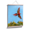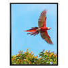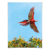 Ein Blick in den wunderschönen klaren blauen Himmel und du bekommst einen besonderen Anblick. Ein hellroter Ara ist in seiner ganzen Pracht im Flug zu sehen. Sie sind einzigartige Geschöpfe und einer der grössten Papageien der Welt. Lehn dich zurück und geniesse den Anblick an deiner Wand!