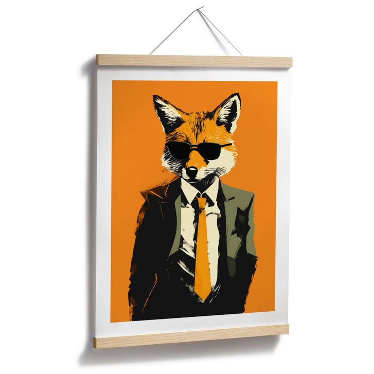 Dieses beeindruckende Poster zeigt einen Fuchs in einem makellosen Anzug, der mit seiner lässigen Sonnenbrille den Charme eines echten Chefs ausstrahlt. Der kräftige orangefarbene Hintergrund verstärkt die Präsenz des Motivs und sorgt dafür, dass das Bild zum dominierenden Element in jedem Raum wird. Das scharfe Design und die intensiven Farben machen dieses Kunstwerk zu einem echten Hingucker und verleihen deinen Wänden Stil und Autorität.
