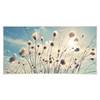 Löwenzahnuhren bei Sonnenuntergang im Sommer vermitteln eine ruhige Atmosphäre. Es sieht aus, als würden sie im Wind wehen. Schaffe mit diesem schönen Foto eine entspannte Atmosphäre in deinem Zuhause und träume von warmen Sommernächten.