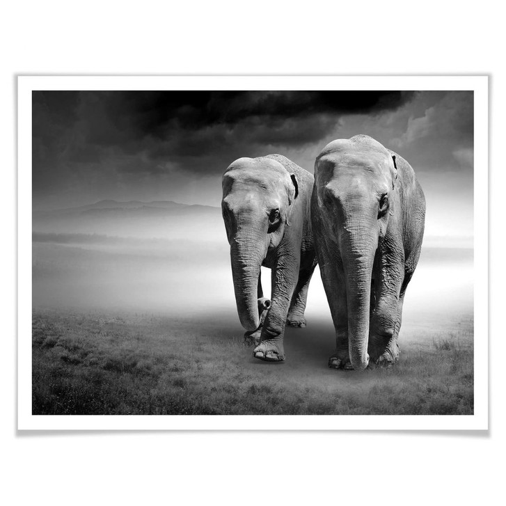 Die beliebten Dickhäuter der afrikanischen Savanne als Dekoration für dein Zuhause. Sie sind besonders beliebt, weil sie Ruhe und Entspannung ausstrahlen und freundliche Tiere sind. Ein schönes Motiv, das ein Elefantenpaar auf einer Wanderung zeigt. Dekoriere dein Zuhause im afrikanischen Stil. Das Poster ist in sieben verschiedenen Grössen erhältlich.
