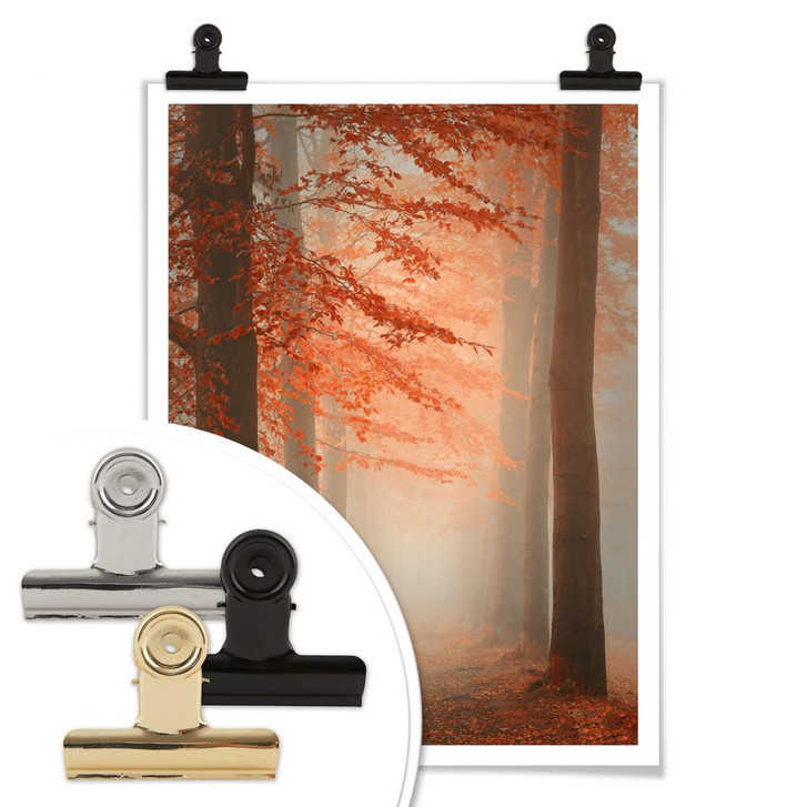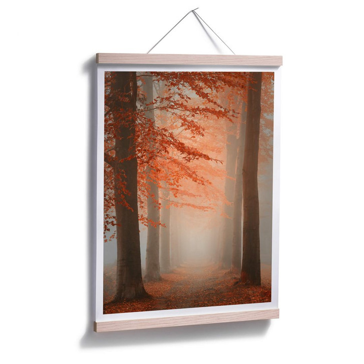 Die Allee ist mit roten Blättern übersät und zeigt einen Weg, auf dem man gerne spazieren gehen möchte. Die kühle Herbstbrise liegt in der Luft und die kalten Monate stehen vor der Tür. Hol dir das herbstliche Fotomotiv nach Hause und peppe deine Wand mit einem romantischen Naturmotiv auf!
