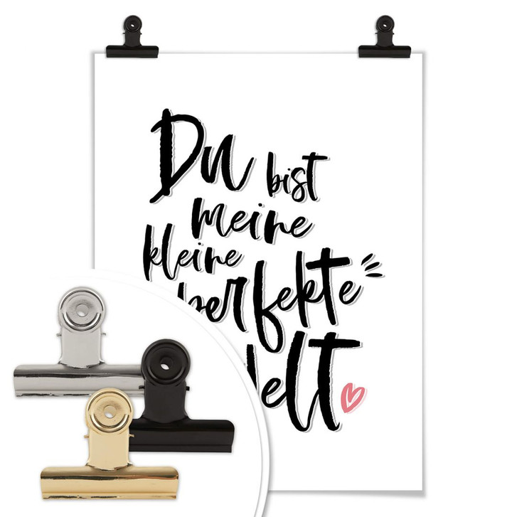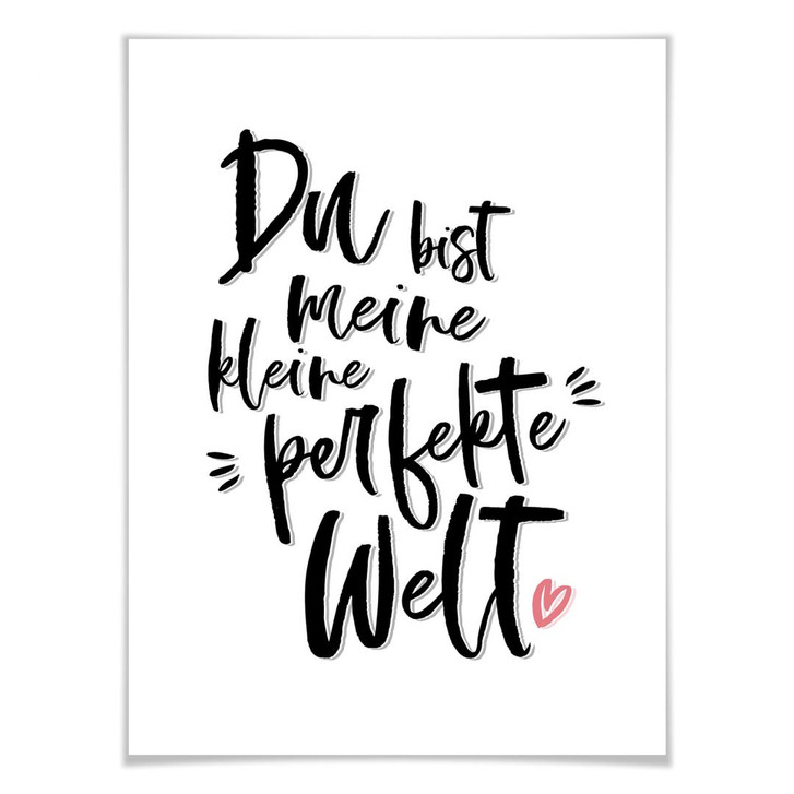 Mit dem Spruch „You are my little perfect world“ als Poster kannst du deinem Schatz zeigen, wie wichtig und wertvoll er oder sie für dein Leben ist. Ein kleines Zeichen der Liebe, das die Wand stilvoll im typografischen Stil schmückt! Mit unseren einfallsreichen Sprüchen kannst du deine Wände für dich sprechen lassen und gleichzeitig im Trend bleiben!