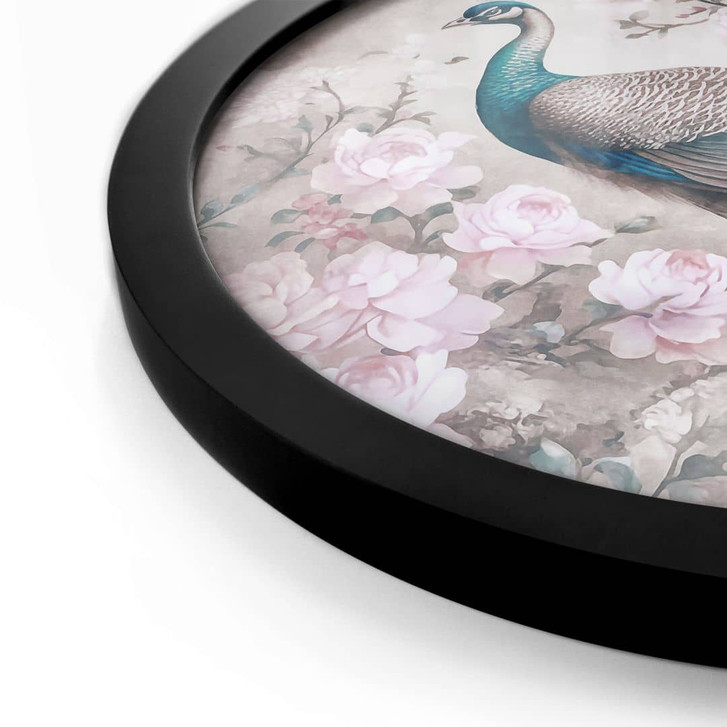 Poster Edler Pfau mit Blüten - Haase - Rund