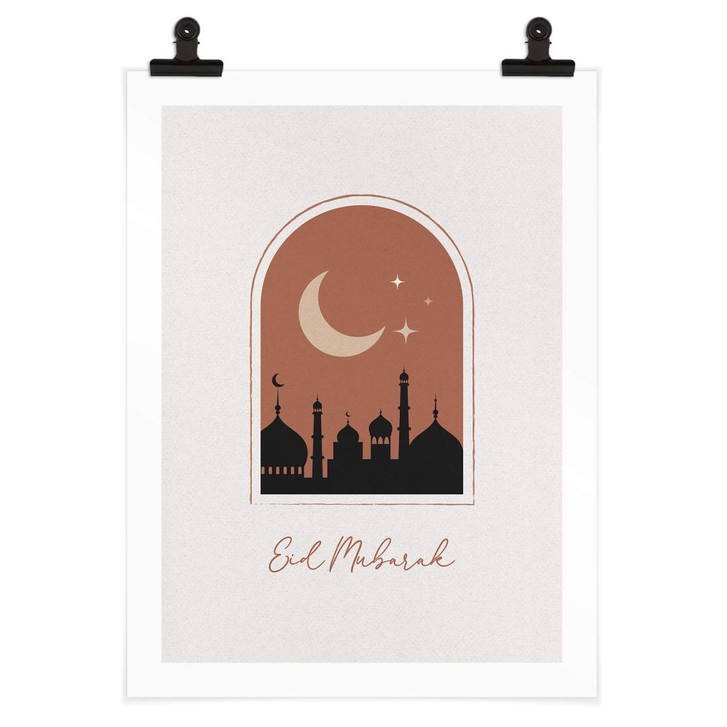 Mit diesem Poster kannst du eine besondere Atmosphäre im Raum schaffen – das Motiv im orientalischen Stil wird während des Ramadans ein echter Hingucker sein. Das Motiv „Eid Mubarak at Night“ eignet sich auch ideal als Geschenk.