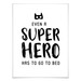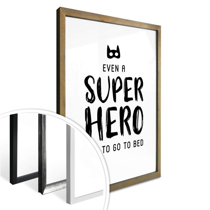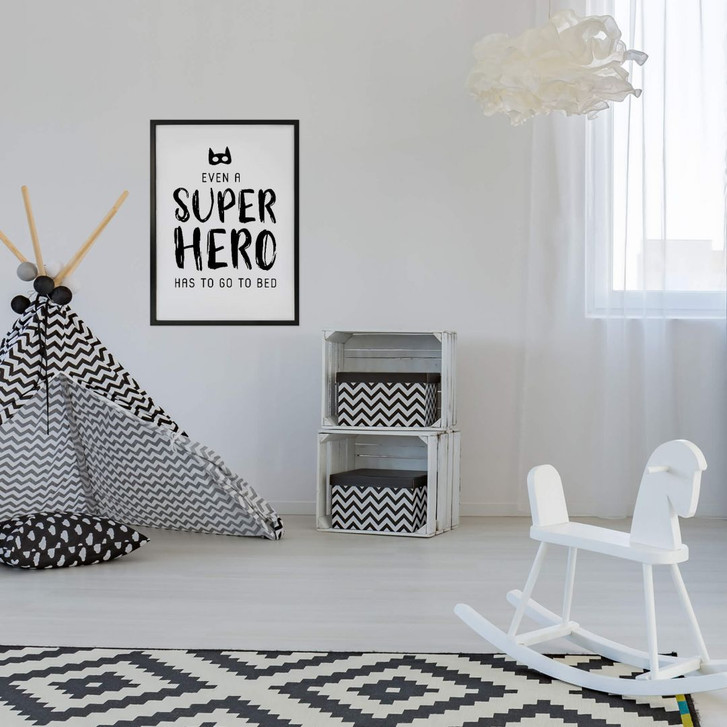 Das weisse Poster mit der schwarzen Aufschrift „Selbst ein Superheld muss ins Bett“ ist ein Blickfang an der Wand. Auch Superhelden müssen manchmal ins Bett! Das Poster ist in verschiedenen Grössen erhältlich. Die Wandhalterung kannst du gleich mitbestellen!