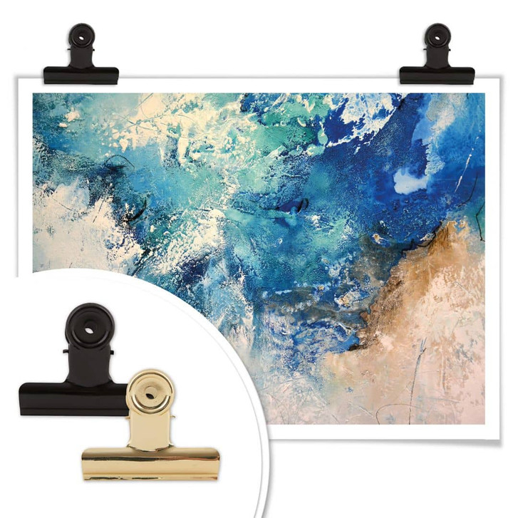 - Montagevorschläge: Tesa Tacks, Washi Tape, Posterleiste aus Eichenholz, hochwertige Posterklemmen aus Metall oder Bilderrahmen