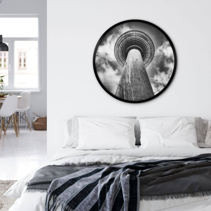 Hast du deinen eigenen Stil? Mit unserem Wandaccessoire kannst du ihn kunstvoll zur Schau stellen. Fotomotive können inspirieren, motivieren, gute Laune verbreiten und alte Erinnerungen wecken. Und dieses Foto von Jeans Brown ist den Themen Städte & Reisen und Schwarz-Weiss gewidmet. Der Berliner Fernsehturm steht im Herzen der Stadt am Alexanderplatz. Das imposante Wahrzeichen misst fast 370 Meter und ist hier aus der Froschperspektive zu sehen. Dadurch wirkt der Turm noch beeindruckender. Der Schwarz-Weiss-Effekt verleiht dem Bild eine dramatische Note und der Blick in den Himmel ist unbeschreiblich schön. Mit seinem Fotomotiv „Fernsehturm Berlin“ hat der Berliner Fotokünstler Jeans Brown die einzigartige Atmosphäre des Berliner Alexanderplatzes eingefangen. Dieses kreisrunde Wandmotiv bietet ein besonders stilvolles Raumgefühl – spüre das Hauptstadtflair mit diesem Wandbild! Der Berliner Fotokünstler Jeans Brown geht mit seiner Kamera durch die Strassen und zeigt die Stadt aus verschiedenen Perspektiven. Er möchte mehr als nur Dokumentarfotografie schaffen. Die zeitlose Schönheit der Stadt fängt er besonders gut in seinen Schwarz-Weiss-Bildern ein. Menschen lässt er bewusst weg, um die Zeitlosigkeit noch mehr zu betonen.