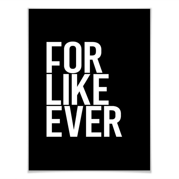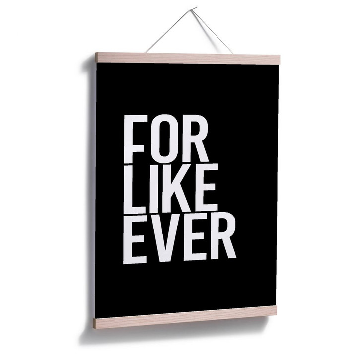 Schmücke deine Lieblingswand mit dem Spruch „For like ever“. Das Poster ist in verschiedenen Grössen erhältlich. Die kreative Wandhalterung kannst du gleich mitbestellen.