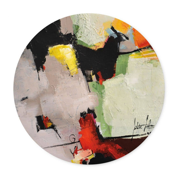 Dieses Kunstwerk wird als hochwertiges Poster in einem eleganten runden Rahmen präsentiert. Der feine Druck bringt die intensiven Farben und die strukturierten Pinselstriche des Originalgemäldes detailgetreu zur Geltung. Der schlichte Rahmen verleiht dem Motiv eine moderne Note und hebt die ausdrucksstarke Komposition hervor.