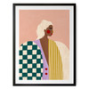 Dieses auffällige Motiv zeigt eine stilisierte Frau, dargestellt in lebendigen Mustern und harmonischen Farben. Das smaragdgrüne Schachbrettmuster, die warmen senfgelben Streifen und der zartrosa Hintergrund bilden ein harmonisches Zusammenspiel, das sowohl Kontrast als auch sanfte Übergänge bietet. Subtile Details wie die roten Wangen und die minimalistischen Knöpfe verleihen dem Werk Tiefe und Charakter. Diese Illustration ist eine Hommage an Stärke und Individualität, eingefangen in einem modernen, künstlerischen Stil.