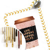 Für die meisten von uns beginnt der Tag erst mit einer Tasse Kaffee – alles andere funktioniert nicht! Dieses beliebte Heissgetränk kann unterwegs oder gemütlich in einem Café genossen werden. Das schimmernde kupferfarbene Design ist für alle Kaffeeliebhaber, die ihre Wände mit fantasievollen Sprüchen aufpeppen wollen!