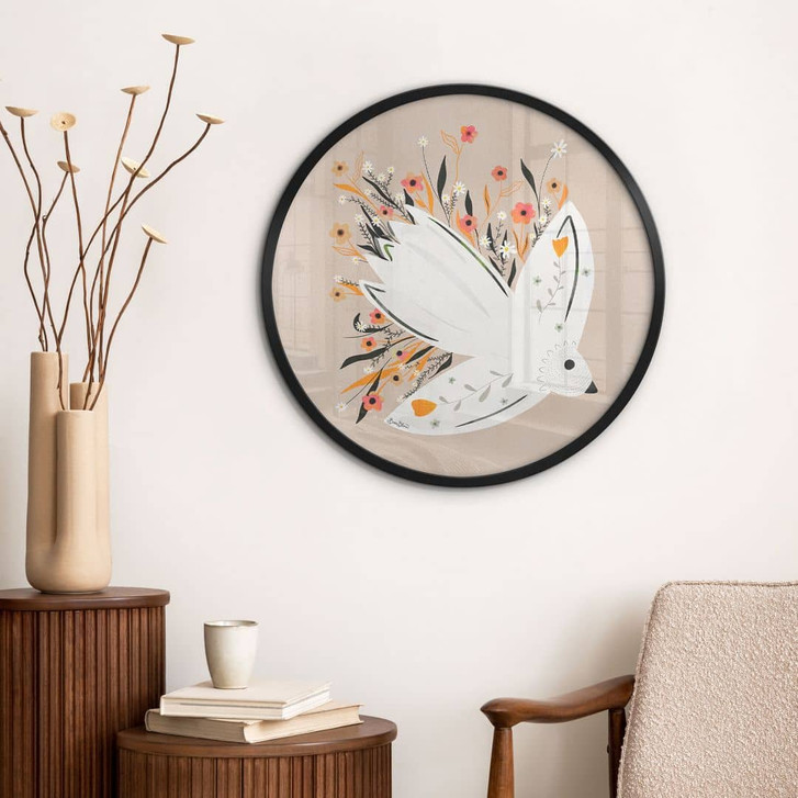 Zuhause ist der wichtigste Ort der Welt. Verleihe deinen Räumen mit dem runden Poster eine symbolische Note! Die weisse Taube ist ein friedlicher Bote in unruhigen Zeiten. Die Taube hat seit der Antike eine symbolische Bedeutung und steht für Unschuld, Sanftmut und den Heiligen Geist. Das neu interpretierte Design stammt von Baroo Bloom. Der fliegende Vogel mit den kleinen Blumen setzt ein starkes Statement an der Wand.