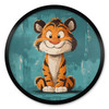 Mit seinem fröhlichen Lächeln und den neugierigen Augen strahlt dieses süsse Tigerbaby pure Lebensfreude und Abenteuerlust aus. Die warmen Orangetöne seines Fells harmonieren perfekt mit dem tiefen Türkis des Hintergrunds und verleihen dem Motiv eine ausdrucksstarke, moderne und verspielte Wirkung. Dieses runde Poster ist eine wunderbare Ergänzung für Kinderzimmer, Spielbereiche oder als farbenfrohes Highlight in liebevoll gestalteten Räumen.