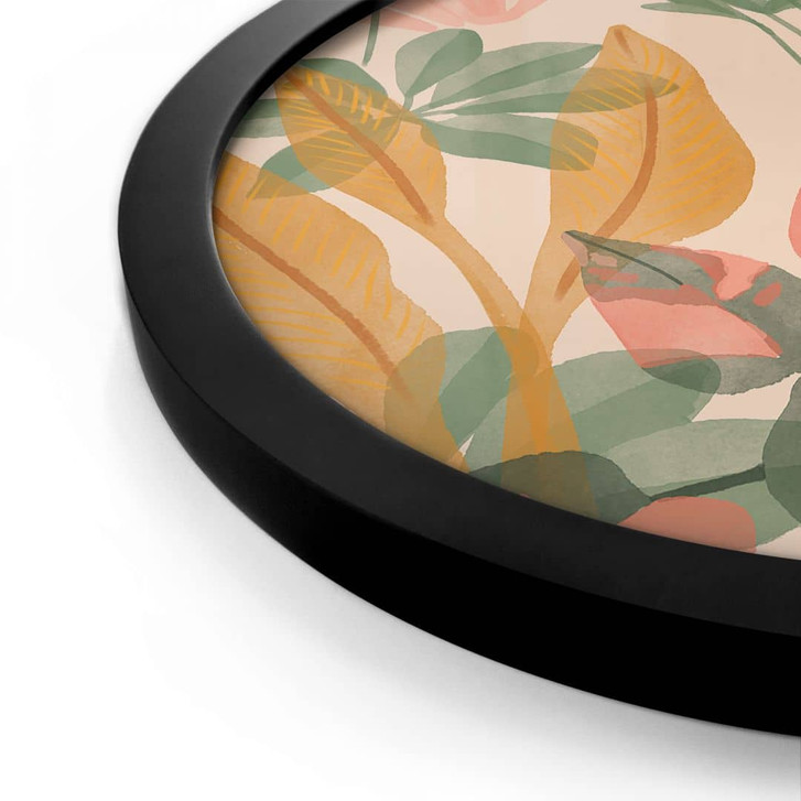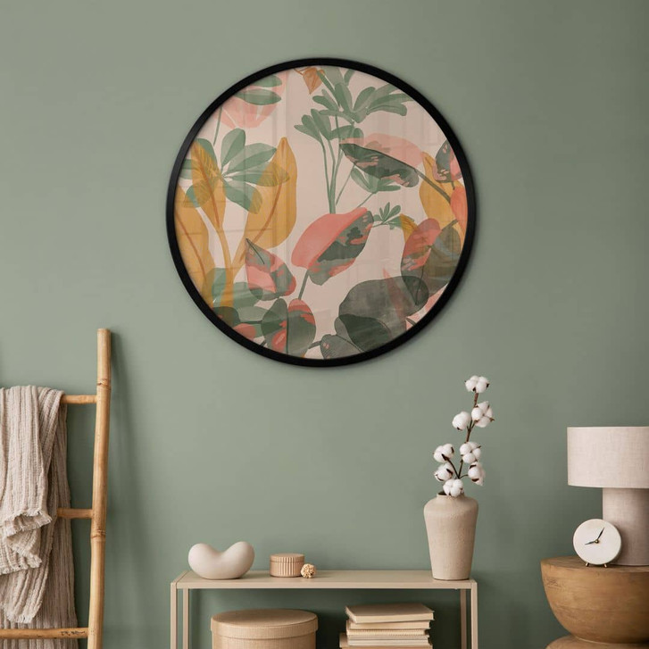Runde Ruhe – Tropischer Blätterzauber in stilvoller Form.